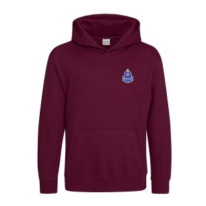 Kennett Primary School Leavers Hoodie 2026. Over the head style hoodie in Oxford Navy or Burgundy, embroidered school logo left chest & printed across the back.